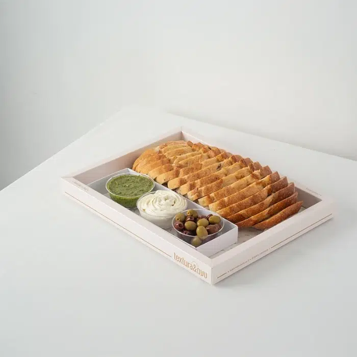 לחם מחמצת זיתים וממרחים – גבינת שמנת שום שמיר, זיתים , פסטו