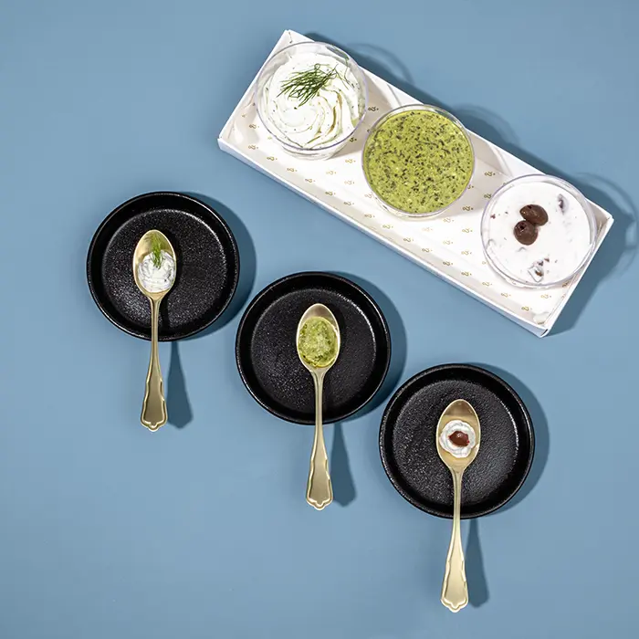 ממרחי גבינות ב3 טעמים שונים – שמנת טפנד, שמנת שום שמיר, ושמנת פסטו.