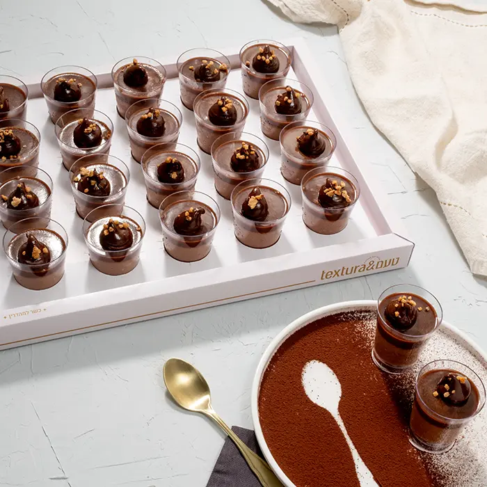 כוס מוס שוקולד מריר, שוקולד חלב ופרלינה גנדוג'ה חלומי