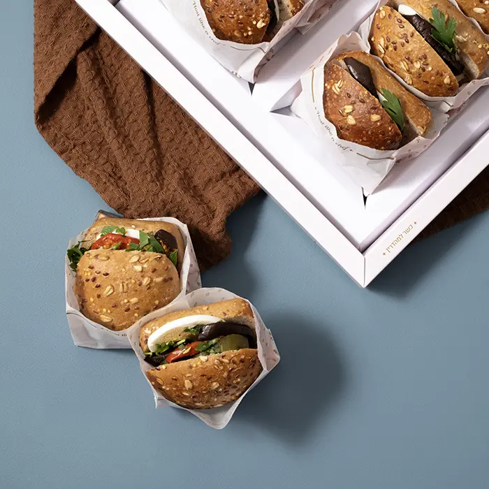 כריכוני ביס גבטה סביח- טחינה, חציל, לימון כבוש, ביצה, עגבניה ופטרוזיליה טרייה.